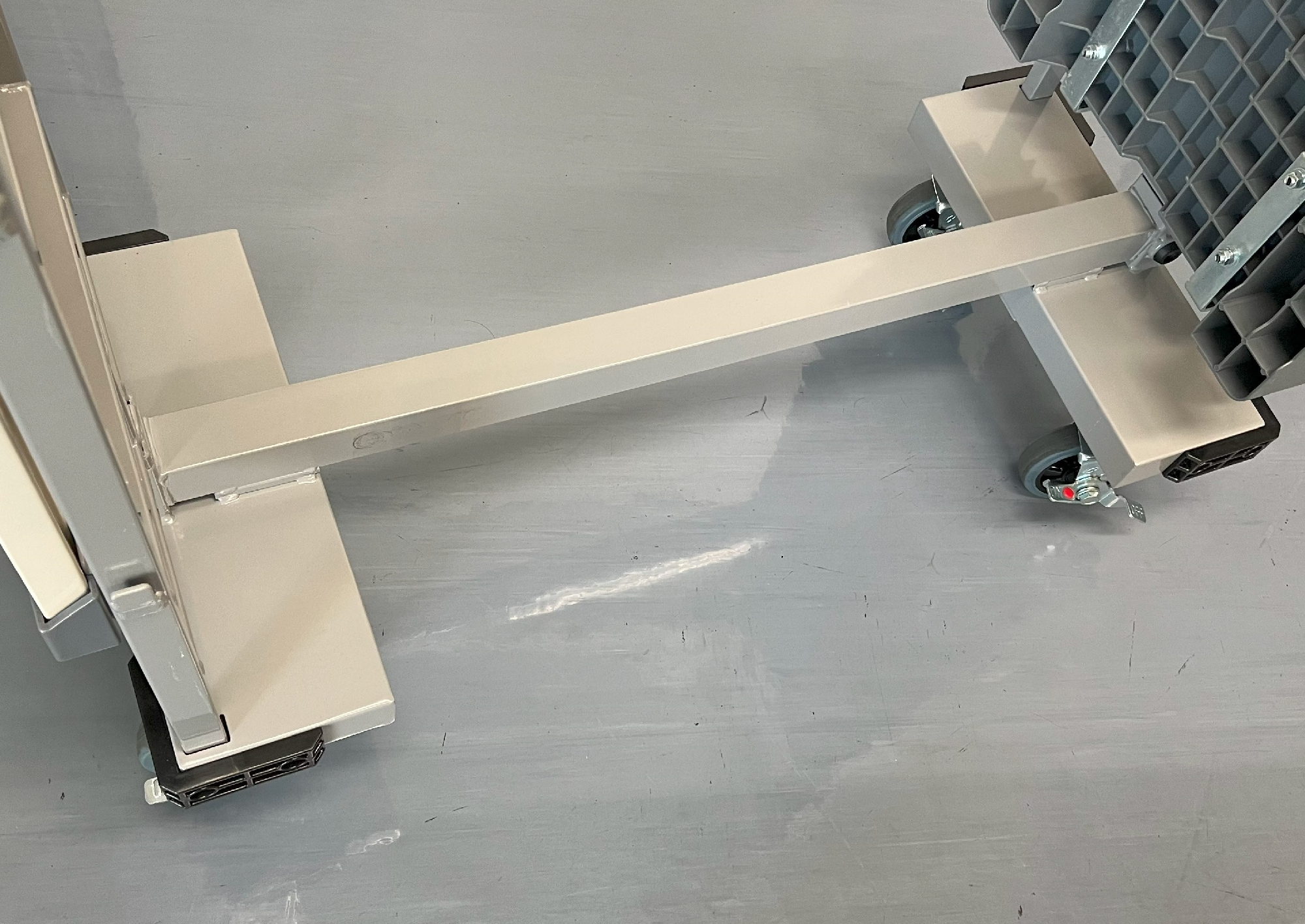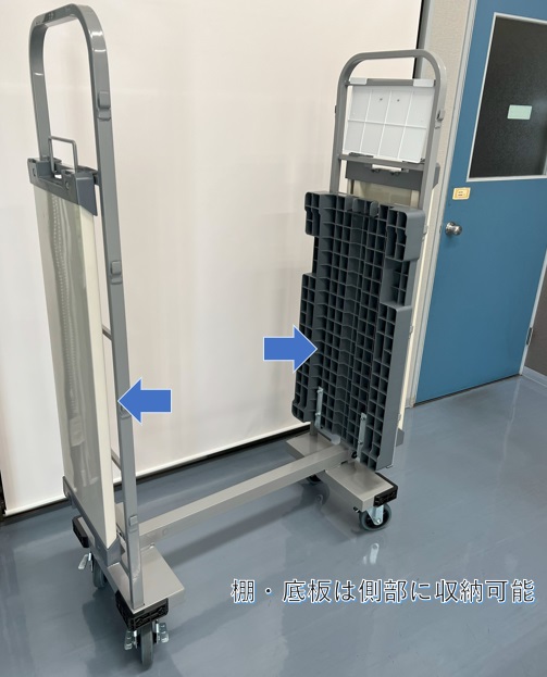「台車」で運ぶ工数が削減できました。「移動棚」のまま運搬ができます。